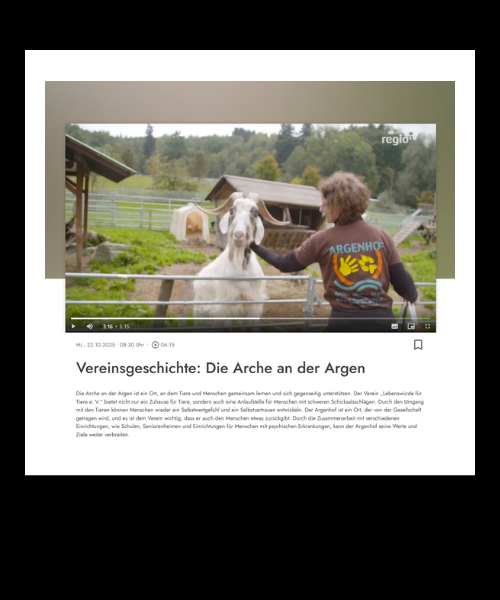 Die meisten Tiere stammen aus Beschlagnahmungen, von Polizei, Ordnungs- oder Veterinärämtern oder von anderen Tierschutzorganisationen und Tierheimen. Wir haben uns zum Ziel gesetzt, den Argenhof als Zufluchtsort auszubauen und einen über Generationen hinweg bestehenden Ort der Sicherheit für Mensch und Tier zu schaffen.